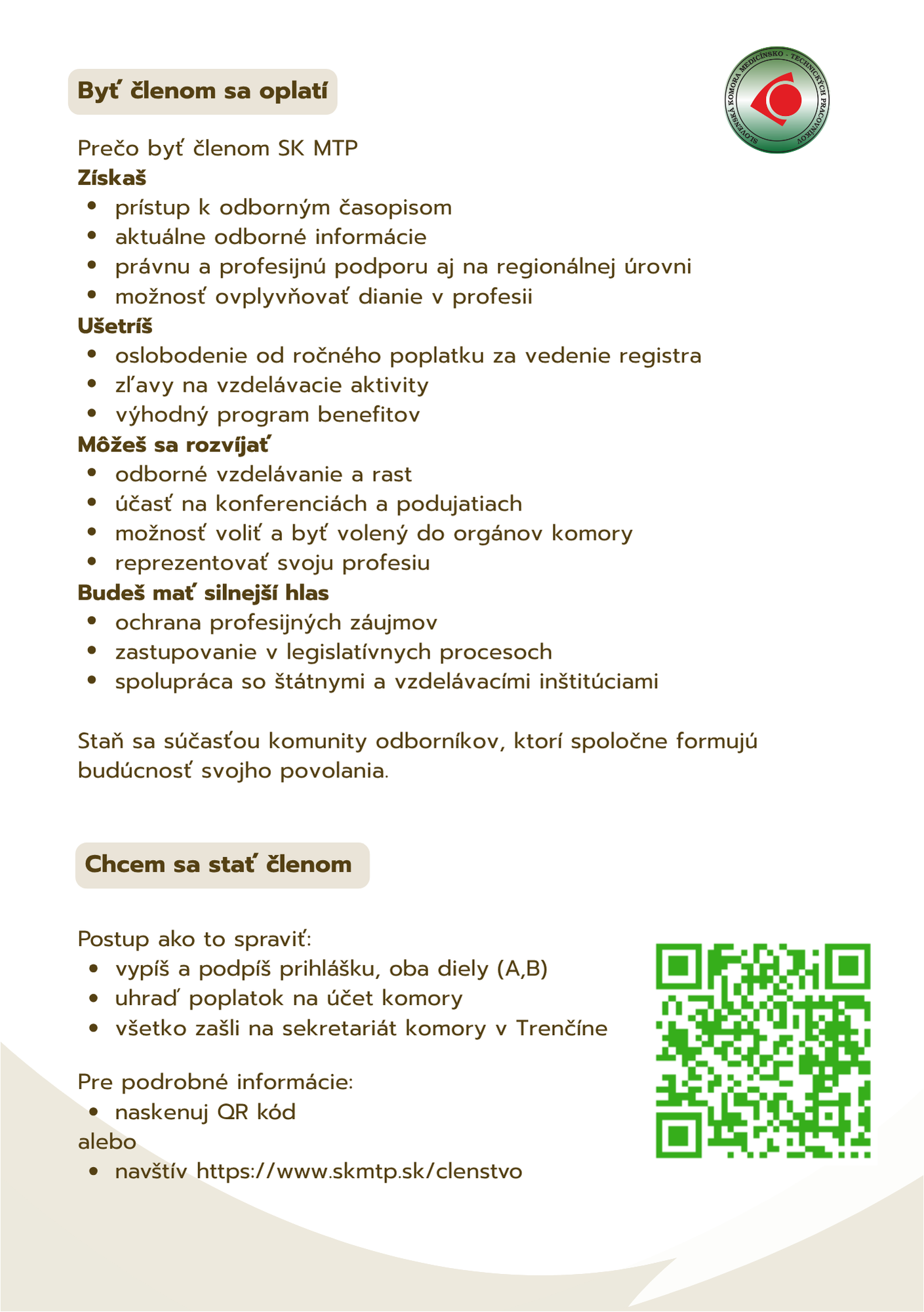 Ak sa Vám v prípade úspešnej registrácie naďalej nedarí prihlásiť, kontaktujte prosím sekretariát komory: info@skmtp.sk